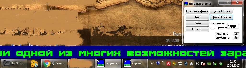 Программа запускающая на экране бегущую строку. Можно поменять шрифт, его размер, цвет и расположение.